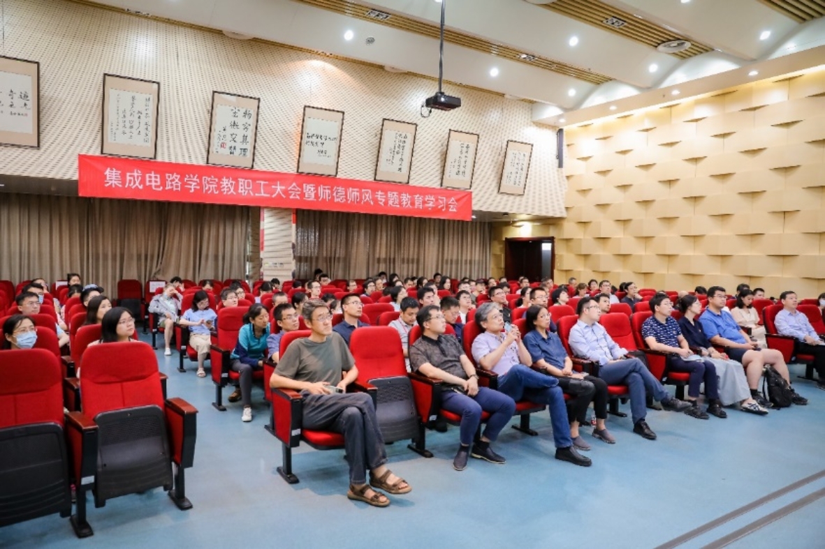 在过去的一年里取得了优异的成绩。同时,也要正视学院发展中依然存在的短板与不足,进一步补缺增量、提质增优。他希望全体教师要再接再厉,结合服务国家战略需求,紧抓“双一流学科”放权改革建设的重要历史机遇建设好集成电路学科。他提出,下一阶段将重点做好学院在昌平新校区的工作开展、推进工艺实验室和测试实验室等公共平台的科研能力水平、整合优化空间资源配置、保障全国重点实验室和高精尖中心科研攻关、加强院系交叉融合等工作,在有组织科研上挖潜增效,再创佳绩。