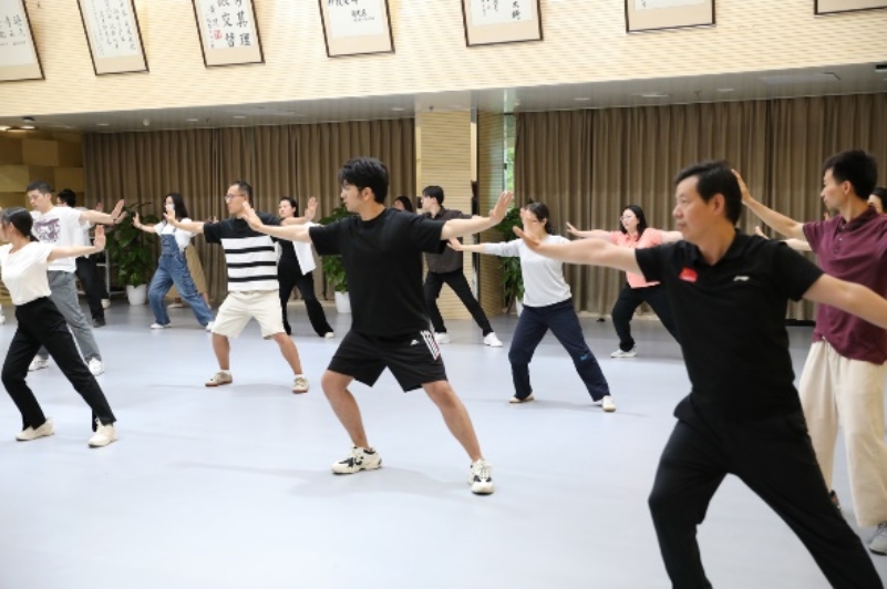 武术研究中心主任王东敏老师莅临我院,为大家讲授健身气功八段,以古风雅韵,共绘师恩长卷。党委副书记刘军华、张舒出席,共计40余位教职员工及学生参与活动。