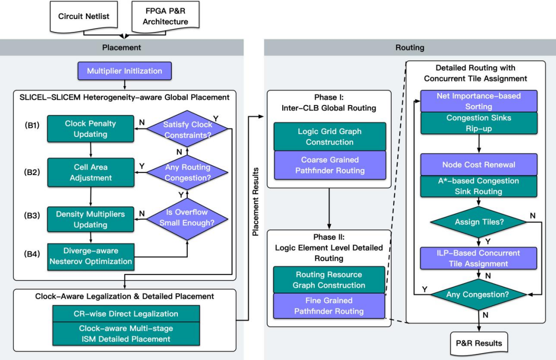 来源:Jing Mai, Jiarui Wang, Zhixiong Di, Guojie Luo, Yun Liang and Yibo Lin, "OpenPARF: An Open-Source Placement and Routing Framework for Large-Scale Heterogeneous FPGAs with Deep Learning Toolkit", IEEE 15th International Conference on ASIC (ASICON), 2023.
