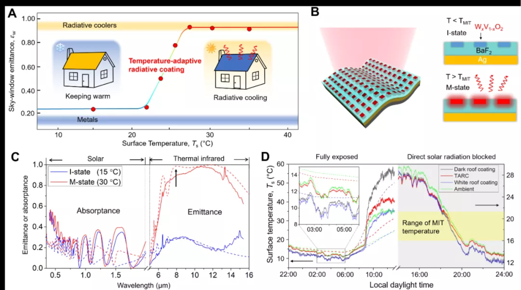 Temperature-adaptive radiative coating for all-season household thermal regulation, Science, 16 Dec 2021, Vol 374 Issue 6574, pp 1504-1509, DOI:10.1126/science.abf7136.