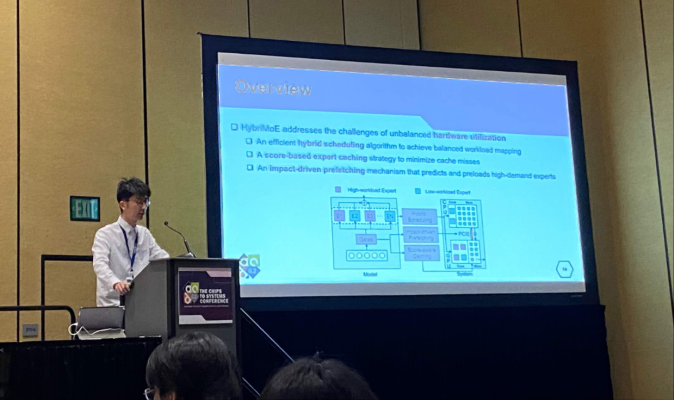 多模态大模型(MLLM)在传统大模型的推理能力上加入了跨模态的感知能力,因此在边缘端具有广阔的应用前景,例如:自动驾驶、具身智能、AR/VR等。然而,边缘端多模态大模型需要在受限的硬件资源下实现快速实时响应。CPU扩展方案通过增加扩展指令和协处理器能够在增强CPU并行计算能力的同时,继承原有软件工具链,因此是合适的边缘硬件平台。本文对MLLM应用进行了细致分析。之后,针对MLLM中需求差异的两种算子GEMM和GEMV分别设计了异构的、基于脉动阵列和sram 存内计算(Compute-In-Memory)的协处理器扩展,并集成进多核系统中。针对不同输出长度下的负载差异,设计了带宽资源管理方案提高异构核的利用率。针对激活通道中的离群值特性,又提出了激活感知的权重剪枝方案,进一步减少推理阶段带宽需求,提升整体性能。该工作以《EdgeMM: Multi-Core CPU with Heterogeneous AI-Extension and Activation-aware Weight Pruning for Multimodal LLMs at Edge》为题发表(博士生白康博为第一作者,贾天宇助理教授为通讯作者)