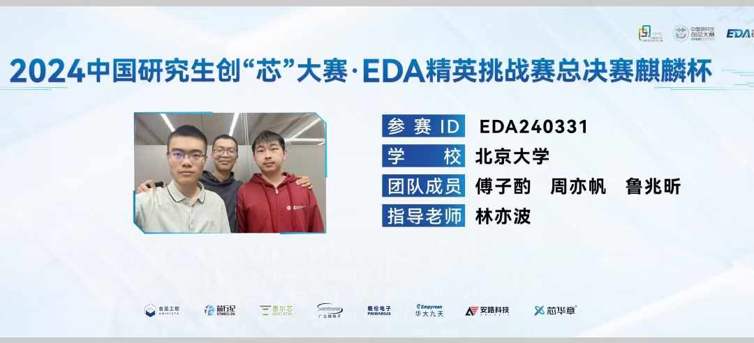 林亦波老师指导的学生队伍傅子酌、周亦帆、鲁兆昕摘得最高奖麒麟杯,获20万元奖金。三位同学获奖的赛题方向是思尔芯赛题“考虑逻辑复制的超图分割算法设计”,是大规模硬件仿真系统中的重要问题。
