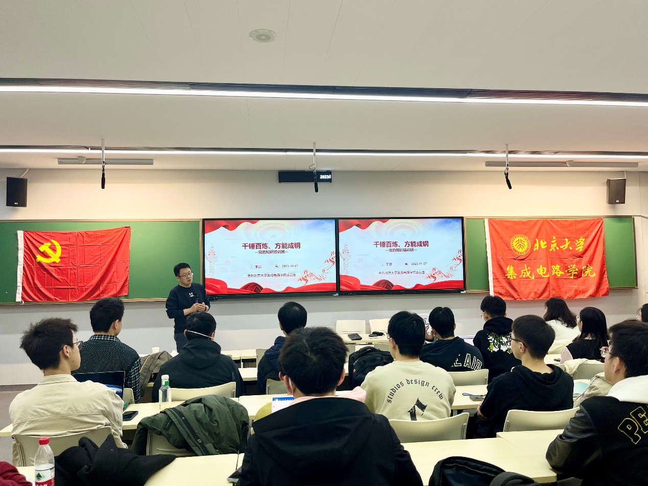 党委书记王源以“千锤百炼,方能成钢”为题讲授党课,介绍了共产党员的基本条件以及如何争取早日入党。学院党委副书记张舒、团委书记王凌越及2023级研究生党员、入党积极分子共40余人参加。活动由王凌越主持。