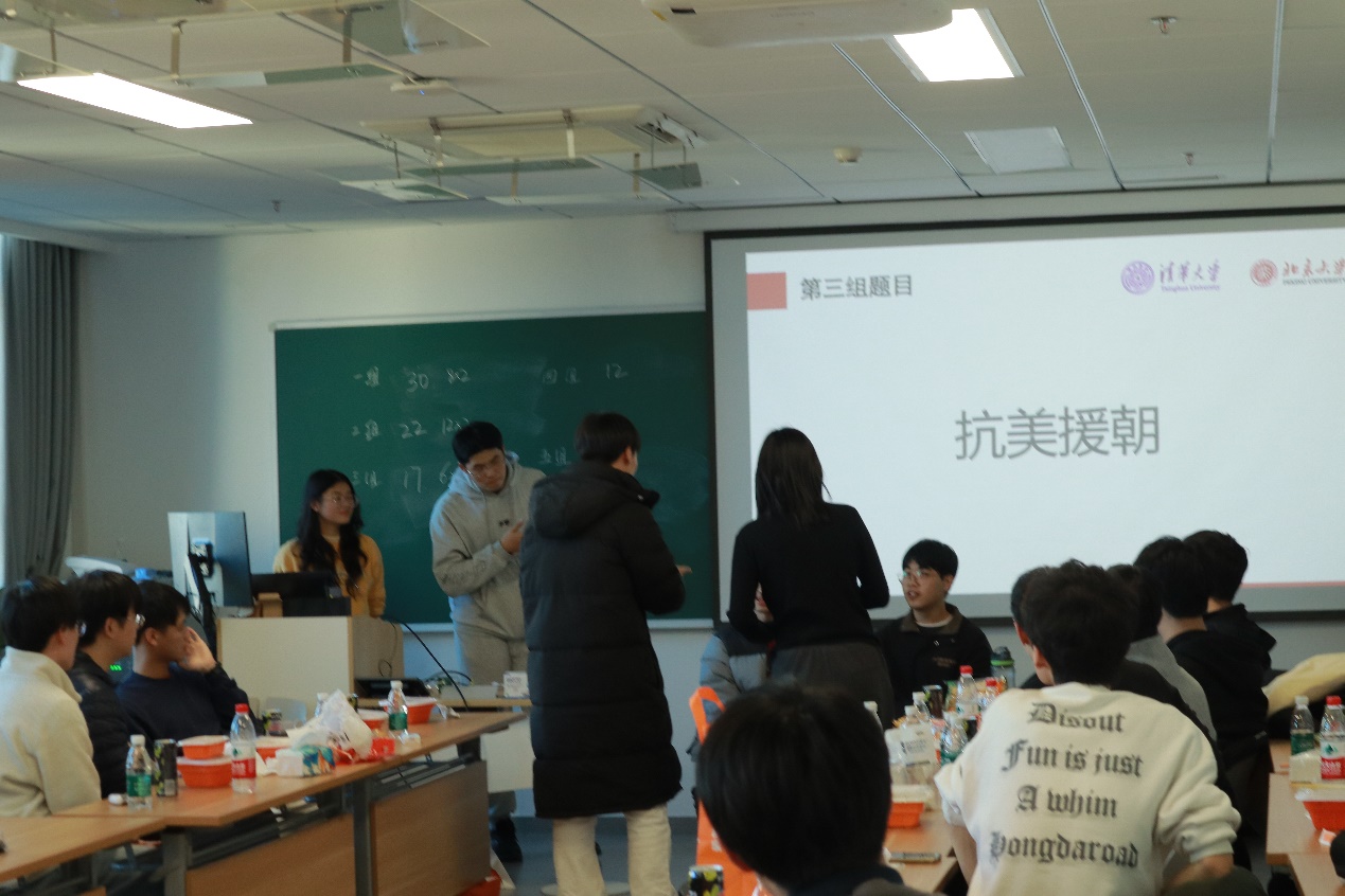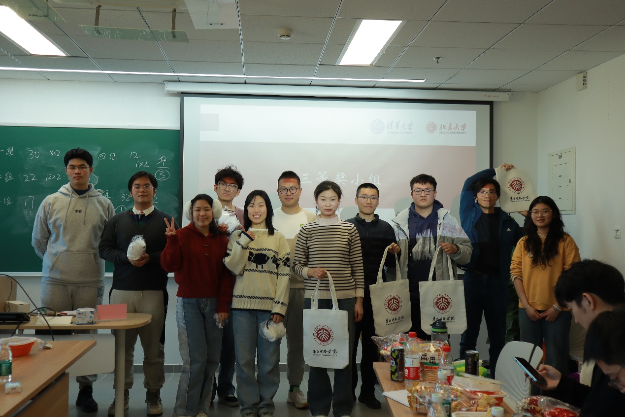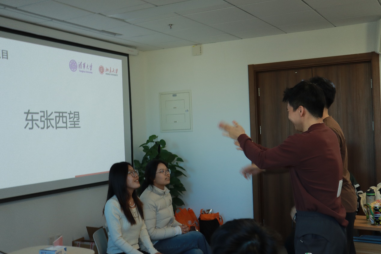 随后,同学们集体前往清华大学自强科技楼开展交流会。首先,两学生支部支书分别介绍了各自支部的基本情况,并分享了党日活动和理论学习的举办经验。随后,两支部进行了“听歌识曲”、“你划我猜”等小游戏环节,同学们就党史问答、专业知识、学校特色等进行比拼。结束后,综合各类小游戏的积分评选出了一、二、三等奖,双方同学也互相交换了纪念品。