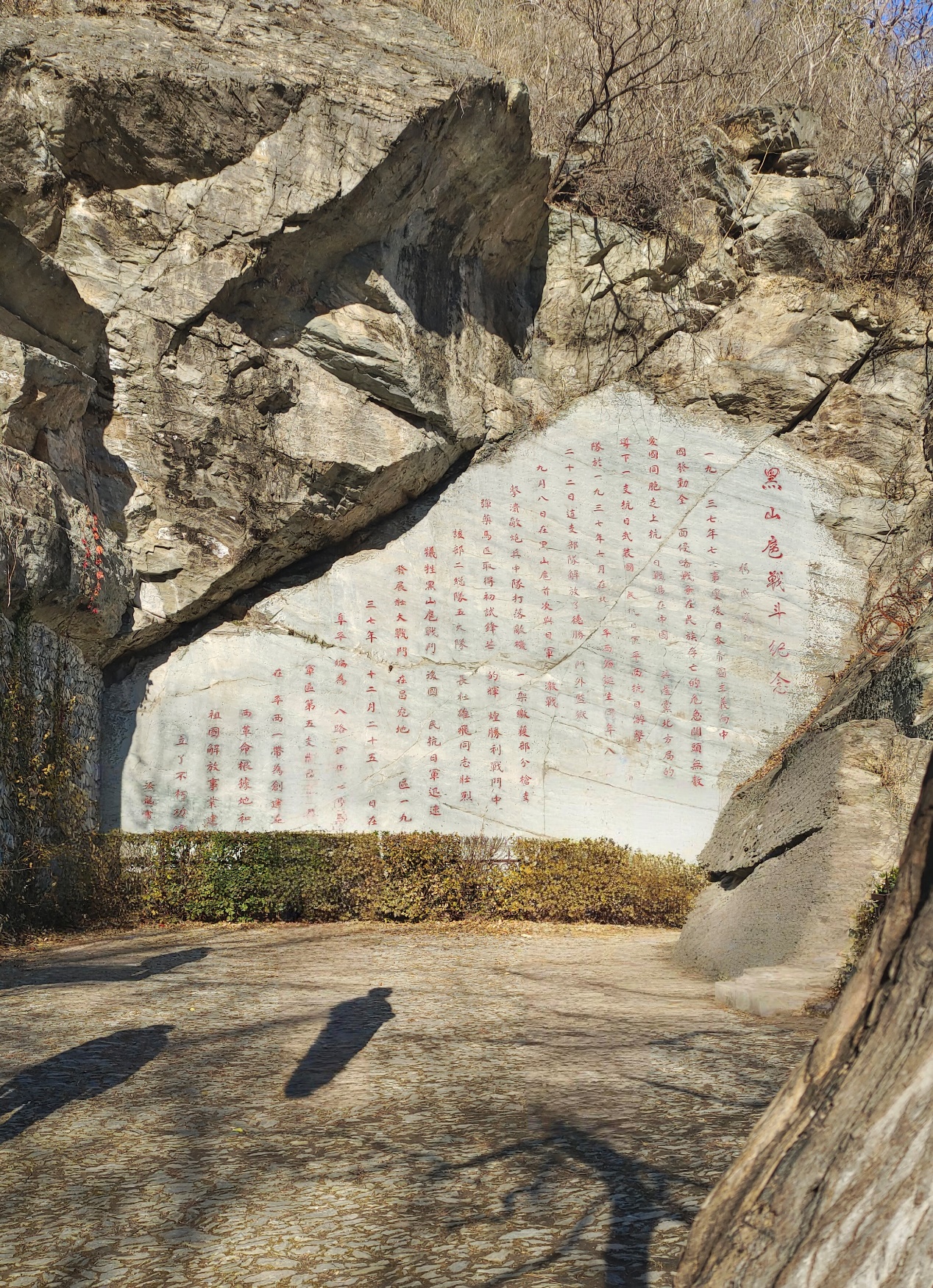 在黑山扈战斗纪念园,同学们在第三小组的介绍下重温了这段历史。“黑山扈抗日战争纪念园”由碑文、纪念浮雕墙及雕塑三部分组成。1937年9月8日,由中国共产党地下工作者领导的国民抗日军与日军在百望山英勇搏斗,这是国民抗日军第一次和日军正面交锋,打死打伤多名日军,创造了首次用轻武器打下敌人飞机的历史,不仅打击了敌人猖狂的侵略气焰,更是增强了我方抗战军民的信心。革命先辈的爱国主义和英雄主义精神让人敬仰,让同学们深刻意识到今日之和平稳定来之不易,作为后来者自身肩负着传承历史、创造未来的使命。同学们在碑文下再次举起右拳,重温入党誓词,决心响荡于山风之中。