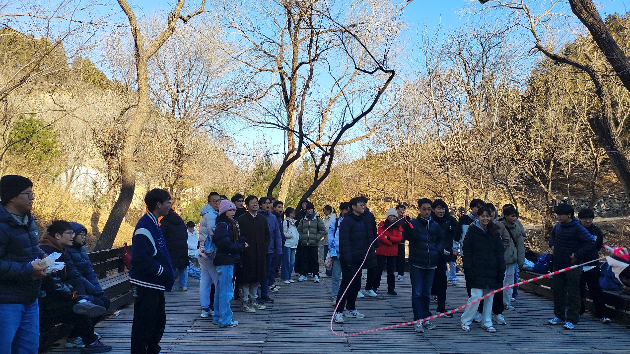 “山明水净夜来霜,数树深红出浅黄。” 早上九点,支部成员抵达公园,简单交流后分成5个小组登山游览,依次参观了绿色文化碑林、黑山扈战斗纪念碑、西山造林工程纪念碑、佘太君庙和航天纪念林等名胜风景,在分组讲解、寻找打卡点和团体跳绳等小活动中,同学们对百望山的生态价值和历史文化有了全面的了解,彼此之间的距离也在慢慢拉近。