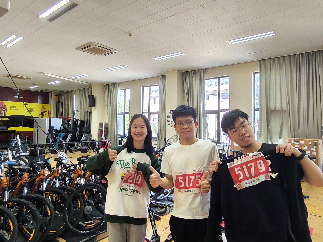 杨振,楼锦程,万芊在室内自行车竞速赛中