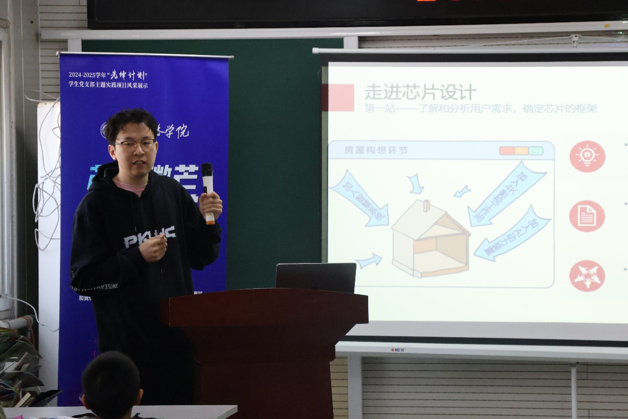 2024级研究生第一党支部与博士一班团支部联合海淀区中关园社区开展了“芯探微芒,智解寻常”科普进社区宣讲活动。学院团委书记王凌越参加活动,活动由第一党支部书记钟婷婷主持。