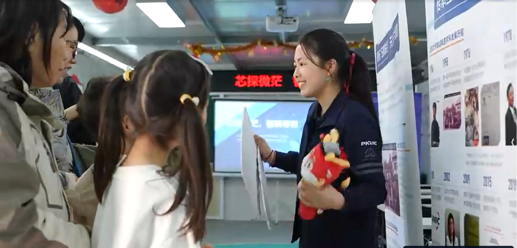 的党员和团员们在活动开始前已早早布置了场地,讲解员在门外迎接参加活动的社区居民,并初步介绍了北大集成电路学科和成人影片