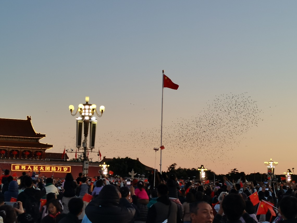 这是我第一次在天安门广场上观看升旗仪式,而且还是在国庆节这极具意义的一天。虽然北京的秋夜十分寒冷,但在现场热烈的氛围和同学们的陪伴下,几个小时的等待时间很快就过去。在国旗迎着朝阳高高升起、和平鸽在广场上空放飞的那一刻,一股强烈的自豪感和使命感油然而生。青年兴则国家兴,我将继续努力,将个人理想追求融入党和国家的事业之中。