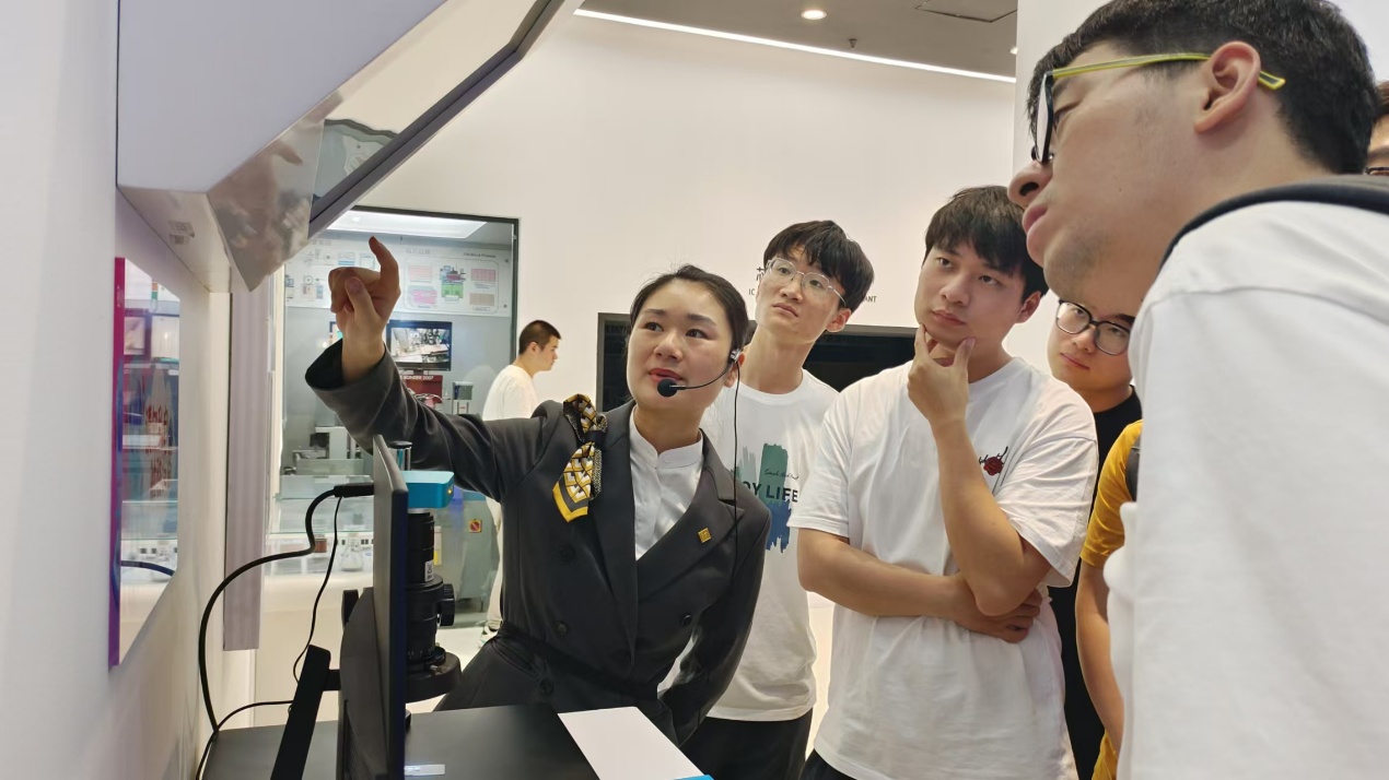 19日下午,团队抵达上海超级计算中心,它坐落于浦东张江高科技园区内,是国内第一个面向社会开放、资源共享、设施一流、功能齐全的高性能计算公共服务平台,是理解算力驱动社会发展的绝佳窗口。在工作人员的带领下,团队成员首先近距离观摩了“魔方Ⅲ”3.4P(FP64)高性能计算机,并通过案例展示,了解超算在气象预报、新药研发、飞机设计等关键领域发挥的“国之重器”作用。当看到实时运算中跳动的数据洪流时,大家深刻体会到"算力即国力"的当代内涵。步入展区,讲解员向成员介绍了超算的历史脉络、核心技术、行业应用和未来趋势,展现了我国在高性能计算领域的自主创新实力。这次参观不仅让同学们见识了我国计算科学的顶尖水平,更认识到超级计算作为科技创新“加速器”的战略意义。