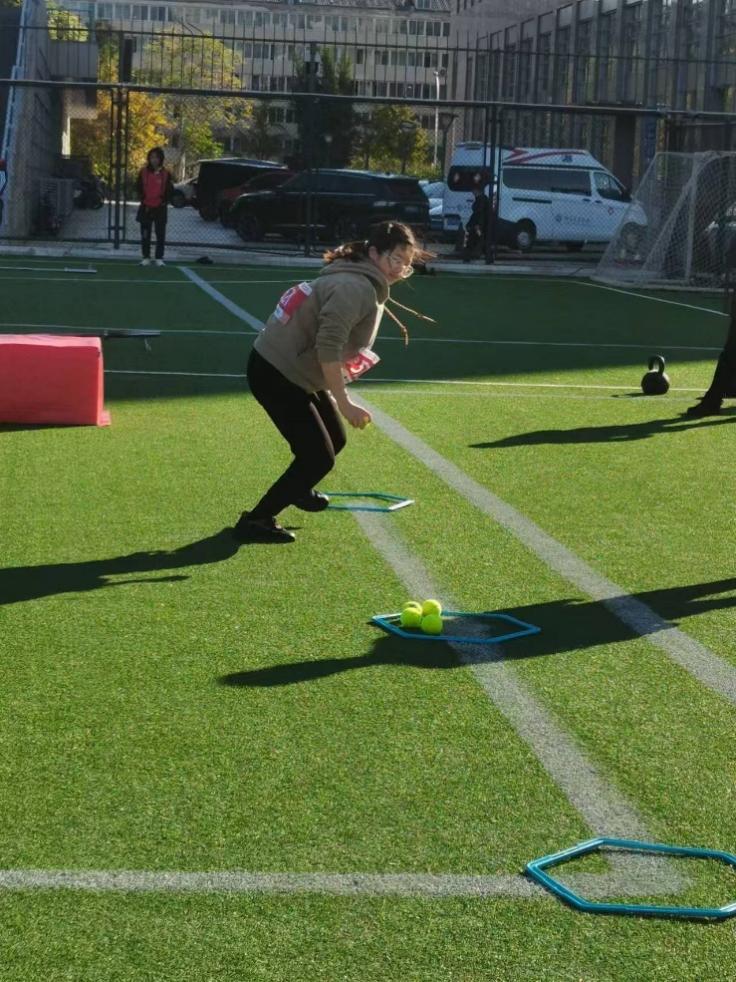 同学们在竞速毛毛虫、射门大赛比赛中