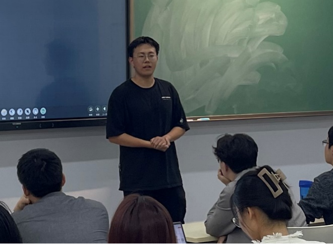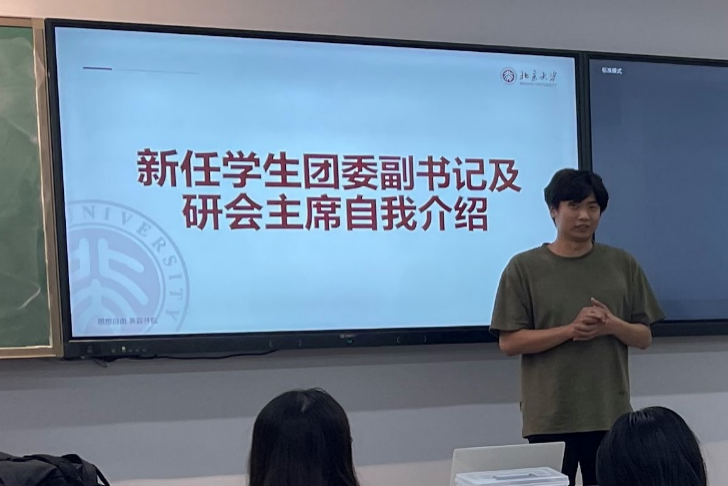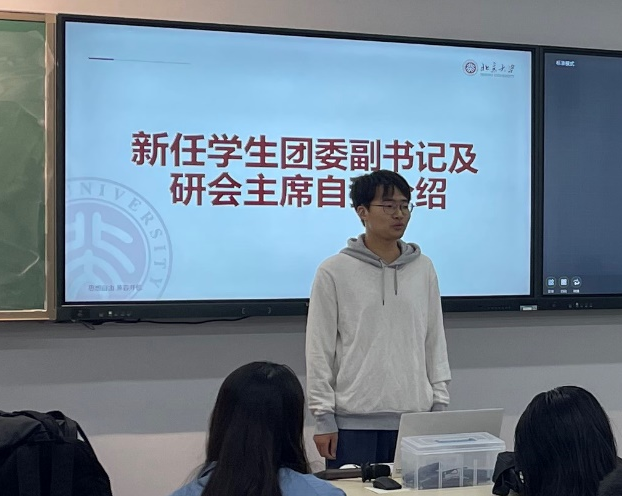 随后,新任学生团委副书记及研会主席作自我介绍。张嘉言感谢了过去一年的经历,自己在为学院同学服务的过程中也收获了成长与经验,希望在新学年里大家也能积极参与到学院的工作中来,服务同学、共同进步。林聪分享了学生工作心得,学生工作不仅锻炼了组织、协调、沟通能力,也收获了一段段真挚的友谊。赵鹏程介绍了自己过去一年在团委中的工作,并对新学年团委的工作进行了展望,他表示新任团委一定会不忘初心、继往开来,努力在各方面能更上一层楼。唐睿就如何处理好学术科研与学生工作之间的关系进行了分享,学生工作能帮助大家在学术科研以外得到不一样的成长与锻炼,并对团委与研会新成员表示欢迎,希望大家能在未来的工作中能够互帮互助、团结协作、做到不一样的自我。