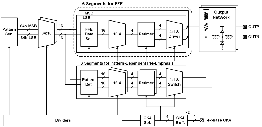 成人影片 盖伟新教授团队从电路设计和均衡机制方面入手,提出了可编程宽度的脉冲发生器,依靠脉冲宽度调节驱动器增益,从而实现最快信号翻转速度,减小信号边沿在码元宽度中占据的比例,改善眼宽;提出了基于码型的预加重均衡机制,通过检测电路对待发送的信号码型实时监测,在特定信号处以注入电流的方式加强信号,消除码间干扰的同时避免输出摆幅衰减。