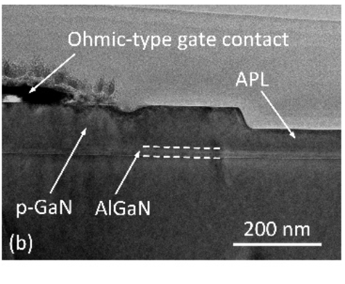 图1. 采用有源钝化技术的GaN功率器件结构、TEM照片、动态电阻测试结果