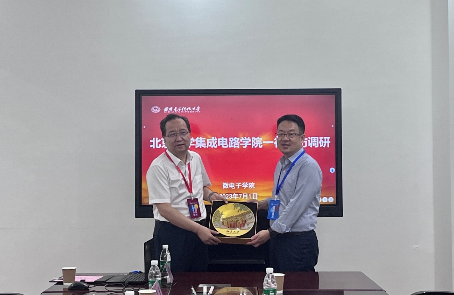 为进一步推动学习贯彻习近平新时代中国特色社会主义思想主题教育走深走实,加强与兄弟院所的交流学习,7月1日下午,正值西安电子科技大学微电子学院建院二十周年院庆暨集成电路领域科技创新与高质量人才培养论坛召开之际,学院党委书记王源、副院长刘晓彦、党委副书记刘军华一行赴西安电子科技大学微电子学院调研交流。西安电子科技大学微电子学院党委书记肖刚、院长张玉明等班子成员共同出席了交流会。
