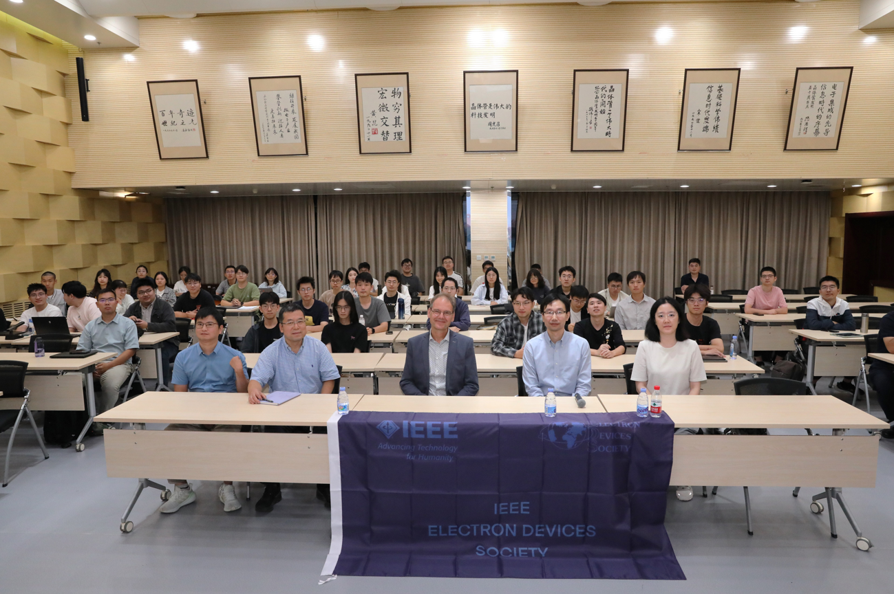 讲座中,Uwe Schroeder博士首先回顾了2006年首次发现掺杂HfO2的铁电性这一里程碑式的突破,这一发现为铁电存储器件的材料选择提供了一个CMOS工艺兼容的完美替代方案,改变了铁电存储领域的研究格局。随后,Uwe Schroeder博士从铁电性的关键影响因素讲起,深入剖析了薄膜中的应力机制,详细讲解了多种因素如何在工艺过程中对薄膜施加应力,而这些应力又是如何影响铁电相的形成过程,同时,材料的相分布反过来会在器件的循环工作过程中影响内部应力状态,揭示了两者之间复杂的相互作用关系。紧接着,Uwe Schroeder博士系统介绍了基于氧化铪的三种存储器件——FeRAM、FTJ和FeFET,阐述了它们各自的工作原理、发展趋势以及当前面临的技术挑战。最后,Uwe Schroeder博士还展示了基于铁电器件的新型应用探索,尤其是在实现高能效神经形态计算领域所展现出的潜力,为在场师生描绘了氧化铪基铁电器件未来的广阔应用前景。