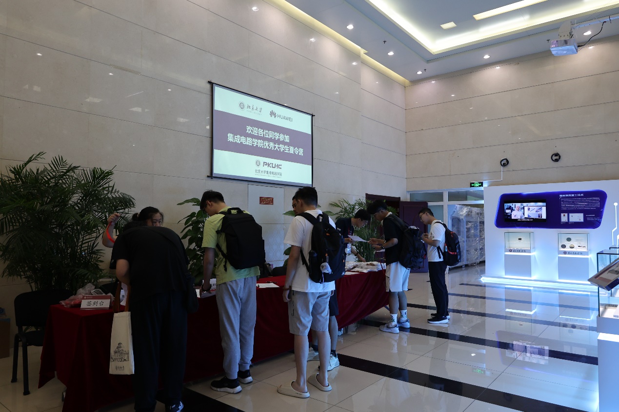 6月27日下午13点,夏令营开营仪式在微纳电子大厦103厅举行。本届夏令营得到了华为技术有限公司的大力支持,华为海思半导体产业生态首席专家王志敏、温德通等一行人来到夏令营现场,与同学们亲切交流,并赠送了《集成电路制造工艺与工程应用》等集成电路专业相关的书籍。