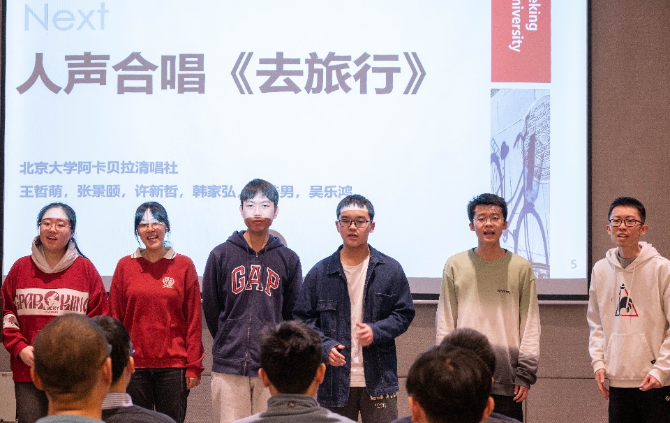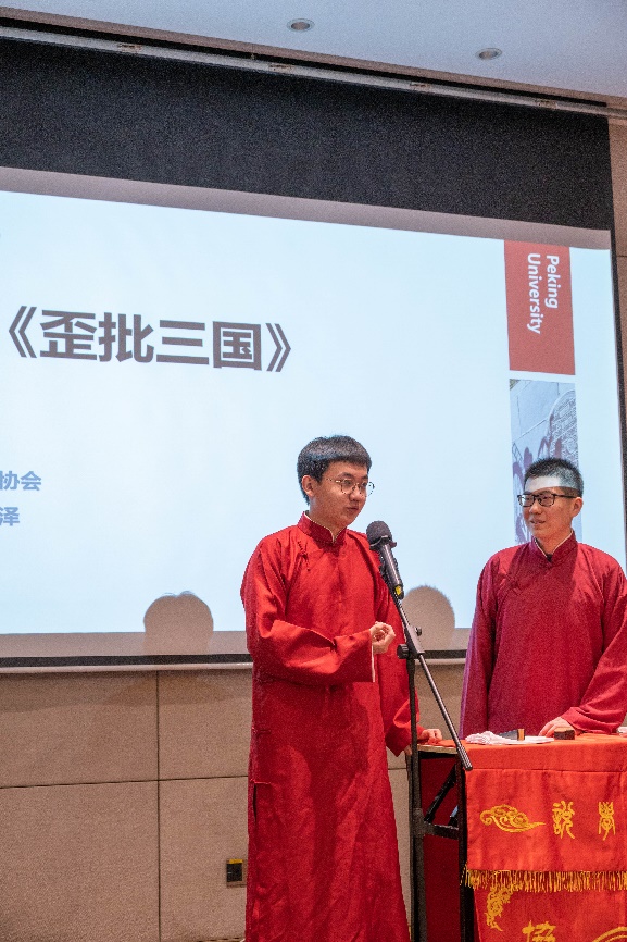 颁奖仪式结束后,北大的文艺社团以及本系同学贡献了精彩纷呈的演出。首先上场的是成人影片 阿卡贝拉清唱社,他们带来了舒缓悠扬的人声合唱《去旅行》。接着,来自DACS系的曾文轩同学为在场师生表演了吉他弹唱《我的歌声里》。在短暂的茶歇环节之后,北大曲艺协会的同学登场带来了相声《歪批三国》。之后,本系的张远鹏同学为大家演唱了歌曲《红玫瑰》。