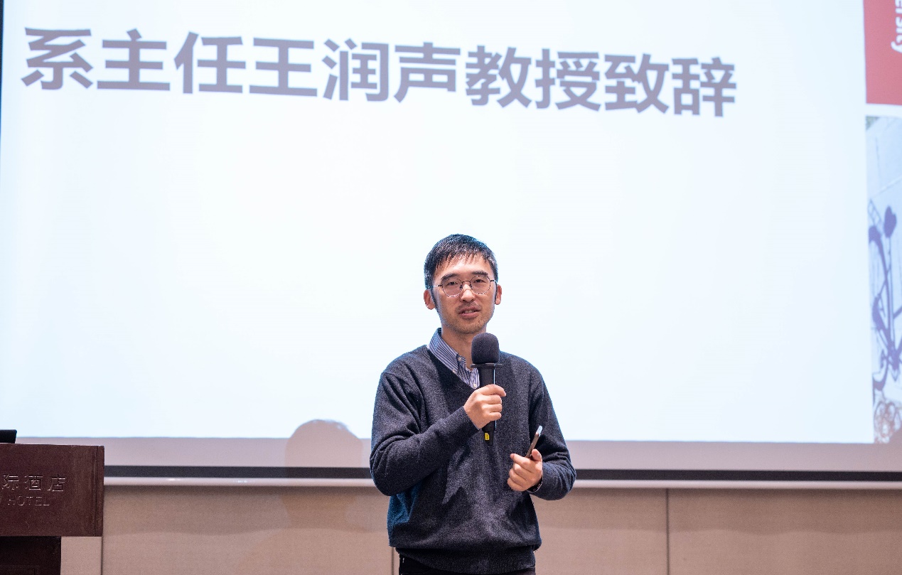 联欢会开始,系主任王润声教授首先作了致辞。王润声教授介绍说,2023年对DACS系来说是一个特殊的年份——这是DACS系成立以来度过的首个整年。这一年以来,DACS系师生超额完成了任务,取得了各种骄人的成绩,不仅发表了许多高水平的学术论文,还和国内企业紧密合作,产出了许多重要的产品原型,为中国EDA产业的发展切实做出了贡献。王润声教授接着指出,要利用好DACS系内部涵盖了自底向上各个层次研究的优势,充分进行学术交流。最后,王润声教授希望DACS系各位师生可以克服近两年两院三地办学科研的困难,保持良好的势头继续前进,在新的一年产出更多高质量成果。