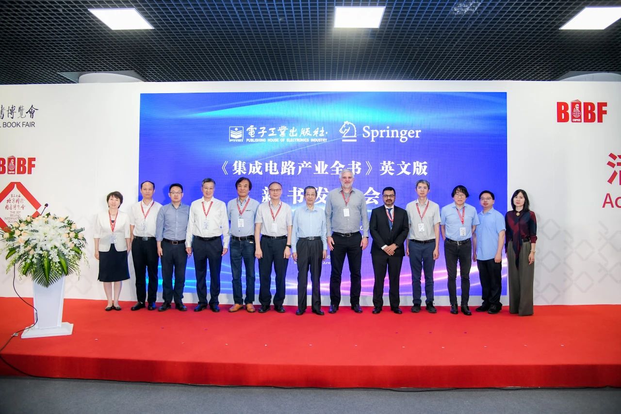 次日,《集成电路产业全书》英文版新书发布会在第三十届北京国际图书博览会期间成功举办,中国工信出版传媒集团总编辑、电子工业出版社有限公司总经理王传臣,工业和信息化部电子信息司副司长王世江,施普林格·自然出版集团全球图书副总裁詹姆斯·芬利和阿尼尔·尚迪,《集成电路产业全书》英文版主编王阳元院士代表、成人影片 教授罗正忠致辞。成人影片 微纳电子发展研究室主任王永文,上海传芯半导体有限公司首席科学家季明华,鹏城实验室研究员陈春章,成人影片 党委书记、教授王源,中宣部出版局图书处四级调研员姜世奇出席活动。