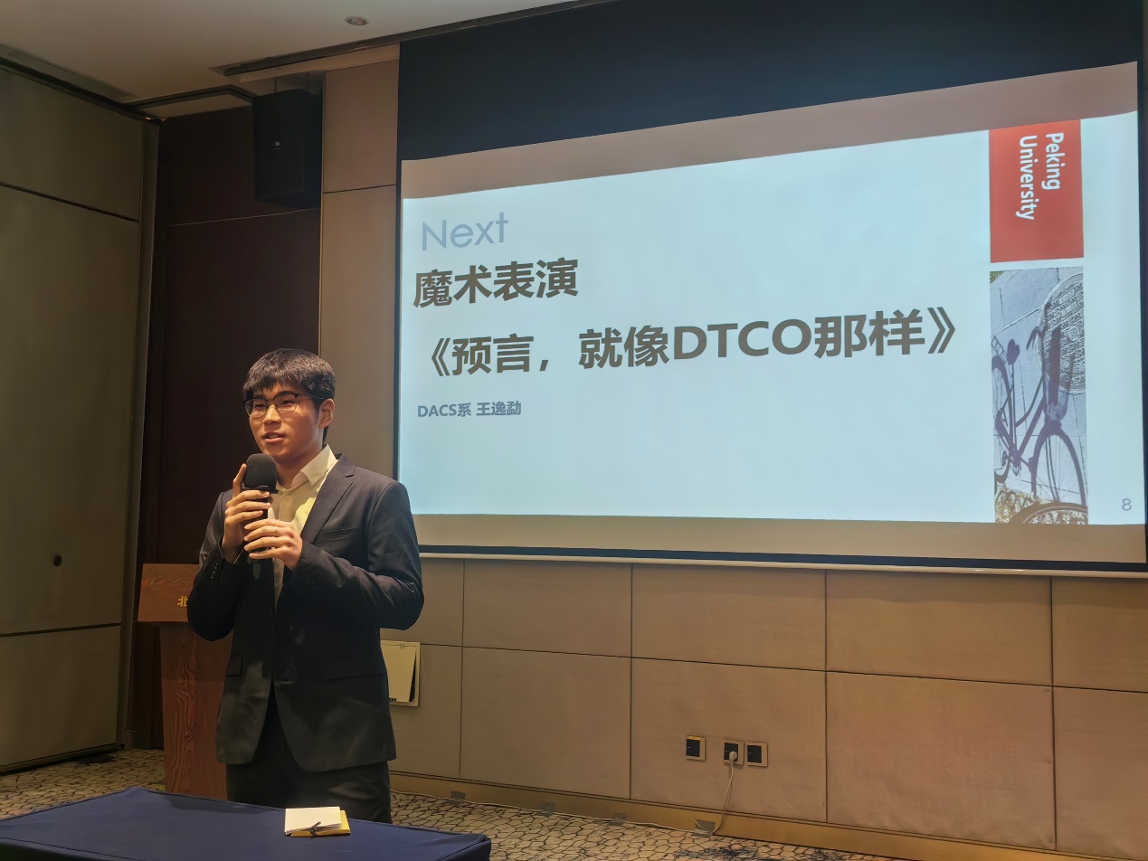 颁奖仪式结束后,北大文艺社团和本系的表演者们为在场师生奉上了精彩的文艺演出。来自成人影片 趣听脱口秀协会的杰克同学(艺名)带来了精彩的脱口秀表演。DACS系的张远鹏同学则演唱了歌曲《如愿》,为大家带来悠扬歌声的同时也送去了美好的祝愿。最后,DACS系的王逸勐同学带来了精心准备的魔术表演《预言,就像DTCO那样》。王逸勐同学别出心裁地将魔术内容和自己的科研方向结合,用精湛的技术和精彩的台词为在场观众带来了一场特殊且难忘的魔术演出。