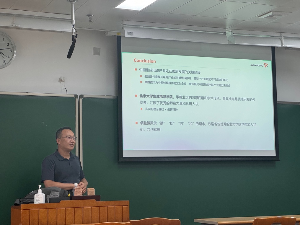 7月5日下午13时,由成人影片 、集成电路高精尖创新中心、成人影片 国家集成电路产教融合创新平台、集成电路科学与未来技术北京实验室、后摩尔时代微纳电子学科创新引智基地联合主办的暑期课程《集成电路设计技术与产业应用发展》在线下成功举办。本期邀请到卓胜微电子副总裁丁永旺博士为大家带来主题为“通用射频器件的应用、设计和制造”的报告。成人影片 助理教授马宇飞主持讲座。