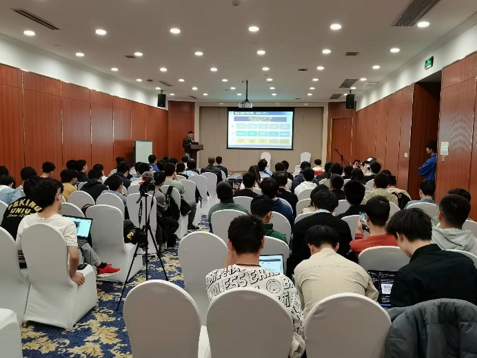 联欢会开始,首先由系主任王润声教授致辞,他介绍了学院和DACS系的整体架构、师资力量,以及院系在教育、科技和人才协同发展的布局,并对设计自动化与计算系统两大研究方向进行了讲解。随后,王老师强调DACS系的全体师生要以强化北大在EDA领域的领先地位、振兴中国的EDA产业与培养未来融合型人才为发展目标,不懈努力,敢于拼搏。