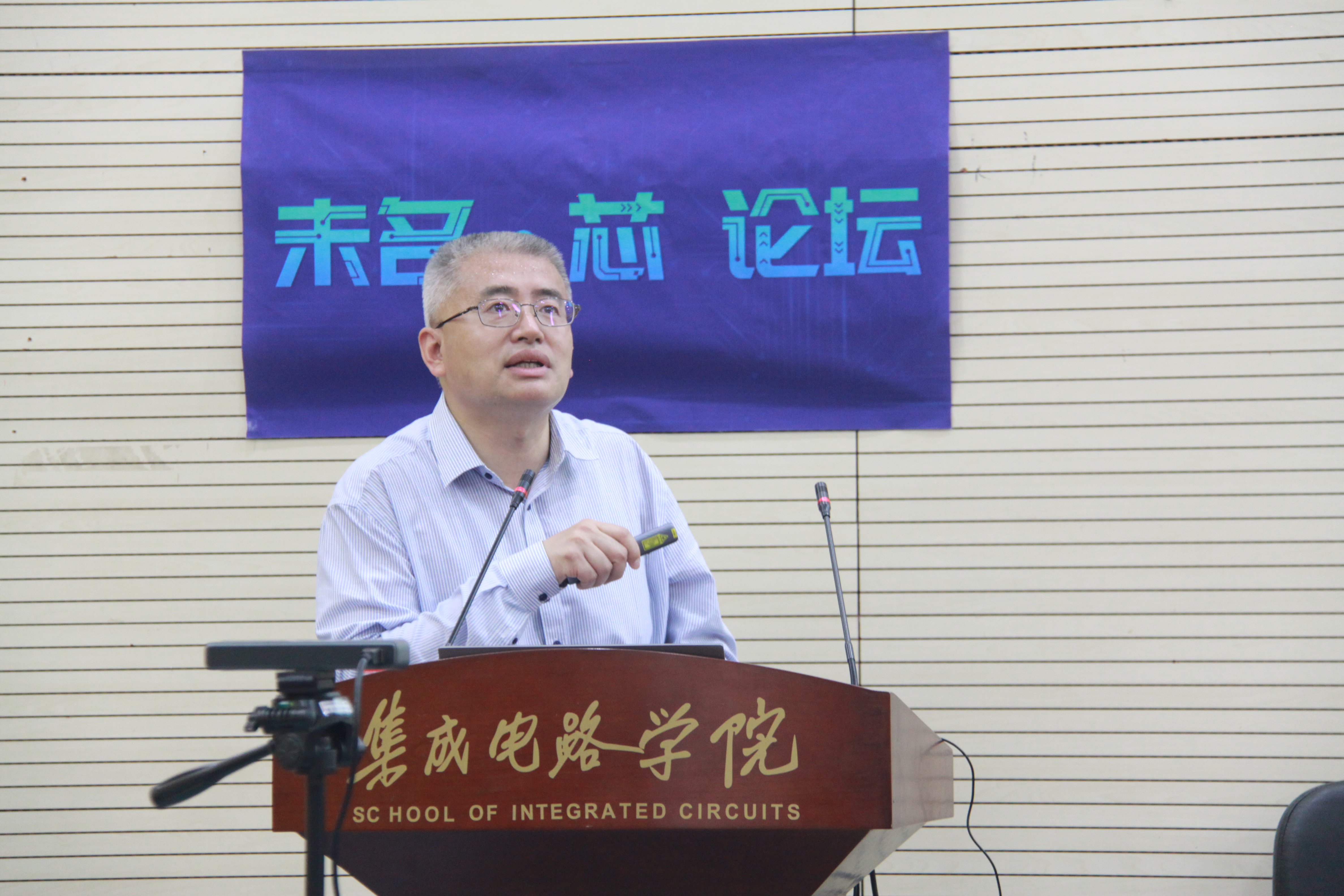 。学院副院长王玮、集成电路设计系副系主任贾嵩、工艺实验室副主任刘鹏等出席交流会。